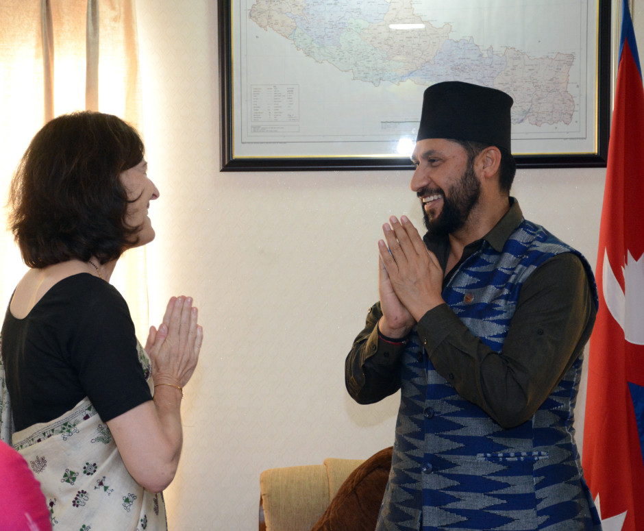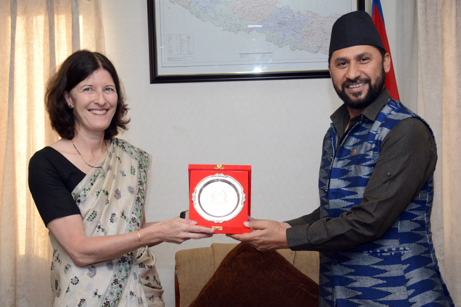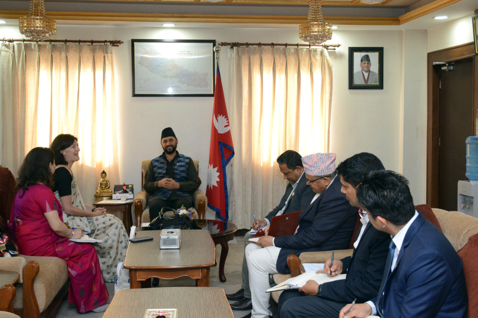 मा. उपप्रधानमन्त्री एवं गृह मन्त्रीज्यू र UNHCR का प्रतिनिधि Carolin Spannuth Verma बीच शिष्टाचार भेट - २०८० चैत्र १९