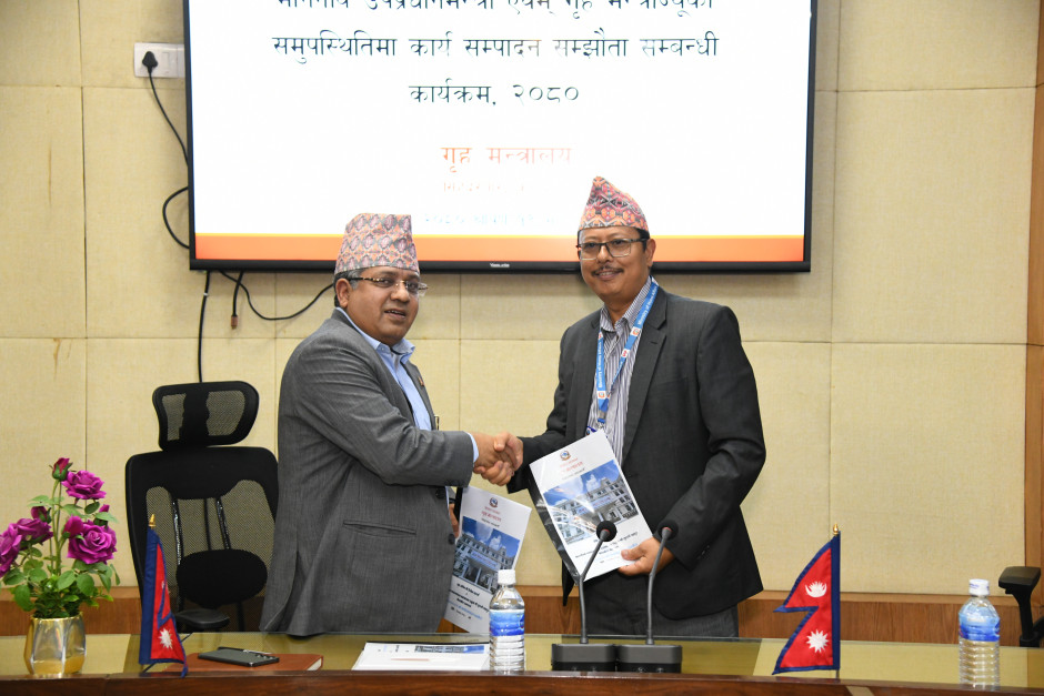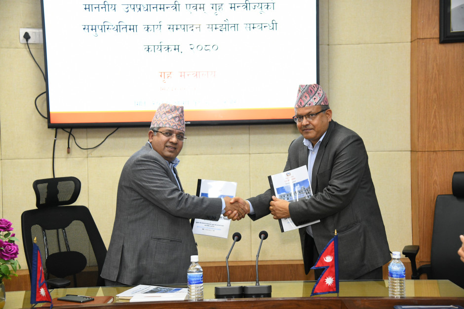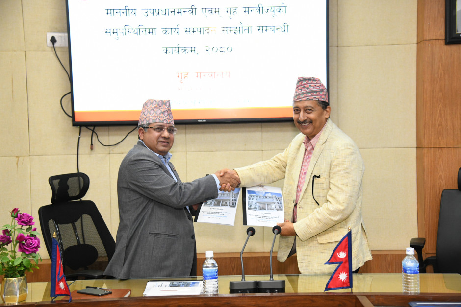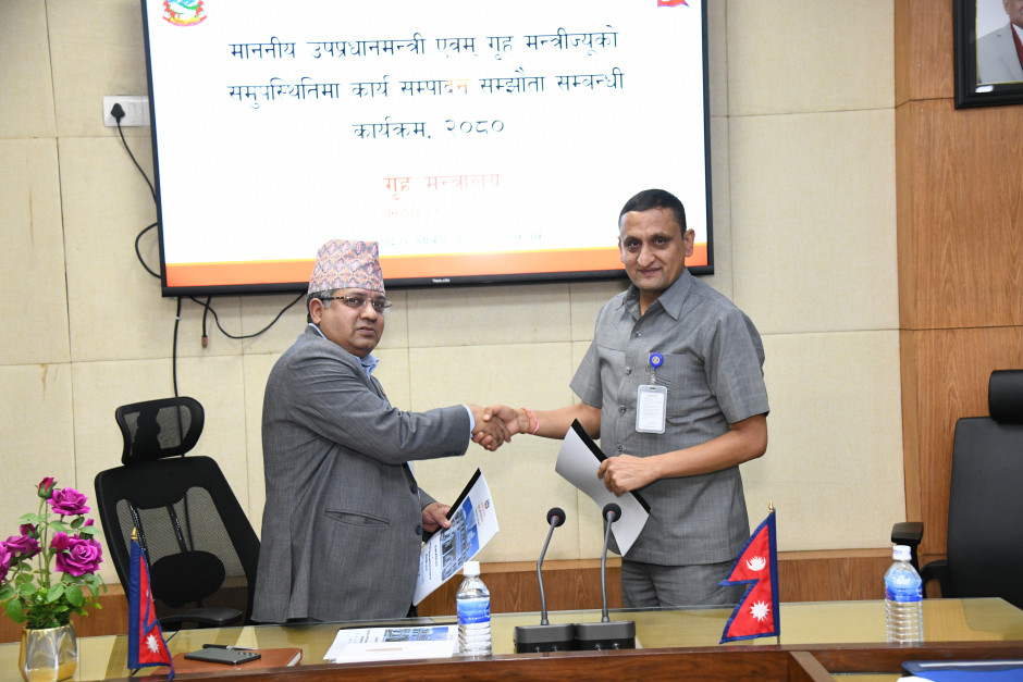 मा. उपप्रधानमन्त्री एवं गृहमन्त्री नारायणकाजी श्रेष्ठज्यू र श्रीमान् गृह सचिव दिनेश भट्टराईज्यूबीच कार्यसम्पादन सम्झौता