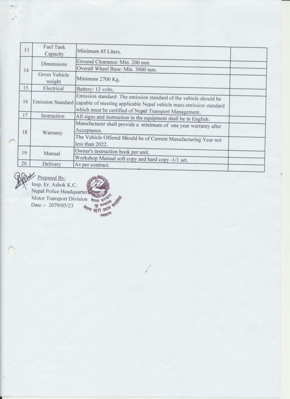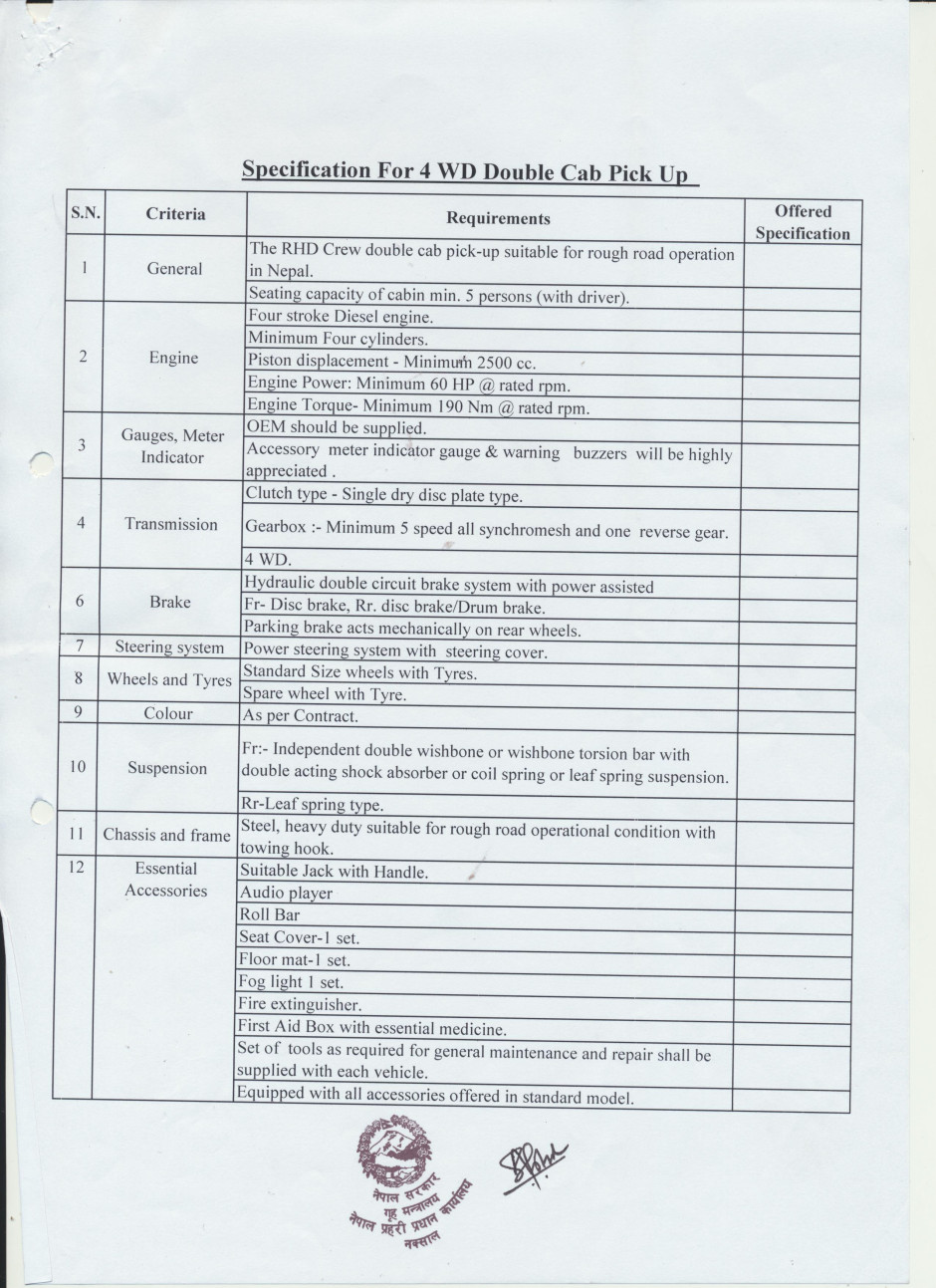 4WD Pick-up (Double Cab) क्याटलग सपिङ विधिबाट खरिद सम्बन्धी प्रस्ताव आव्हानको सूचना