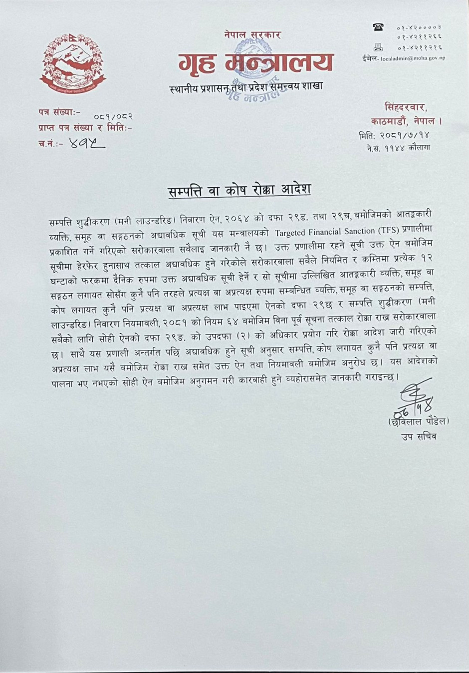 गृह मन्त्रालयसँग सम्बन्धित गुनासोका लागि सम्पर्क नम्बर