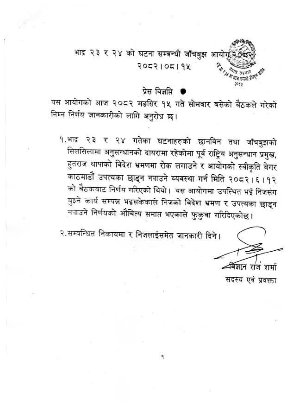 भाद्र २३ र २४ को घटना सम्बन्धी जाँचबुझ आयोग २०८२ | विज्ञप्ति