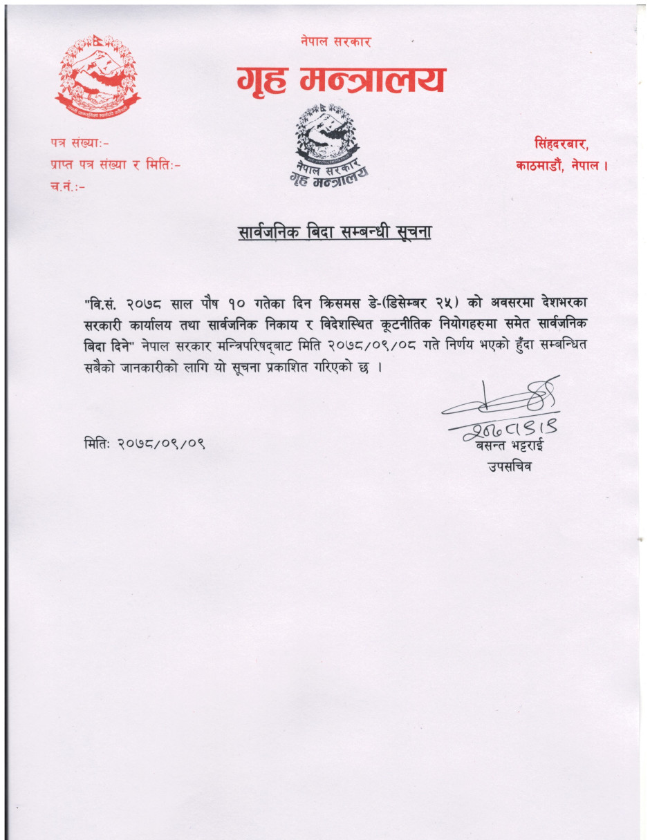 २०८१ सालको सरकारी तथा सार्वजनिक विदा