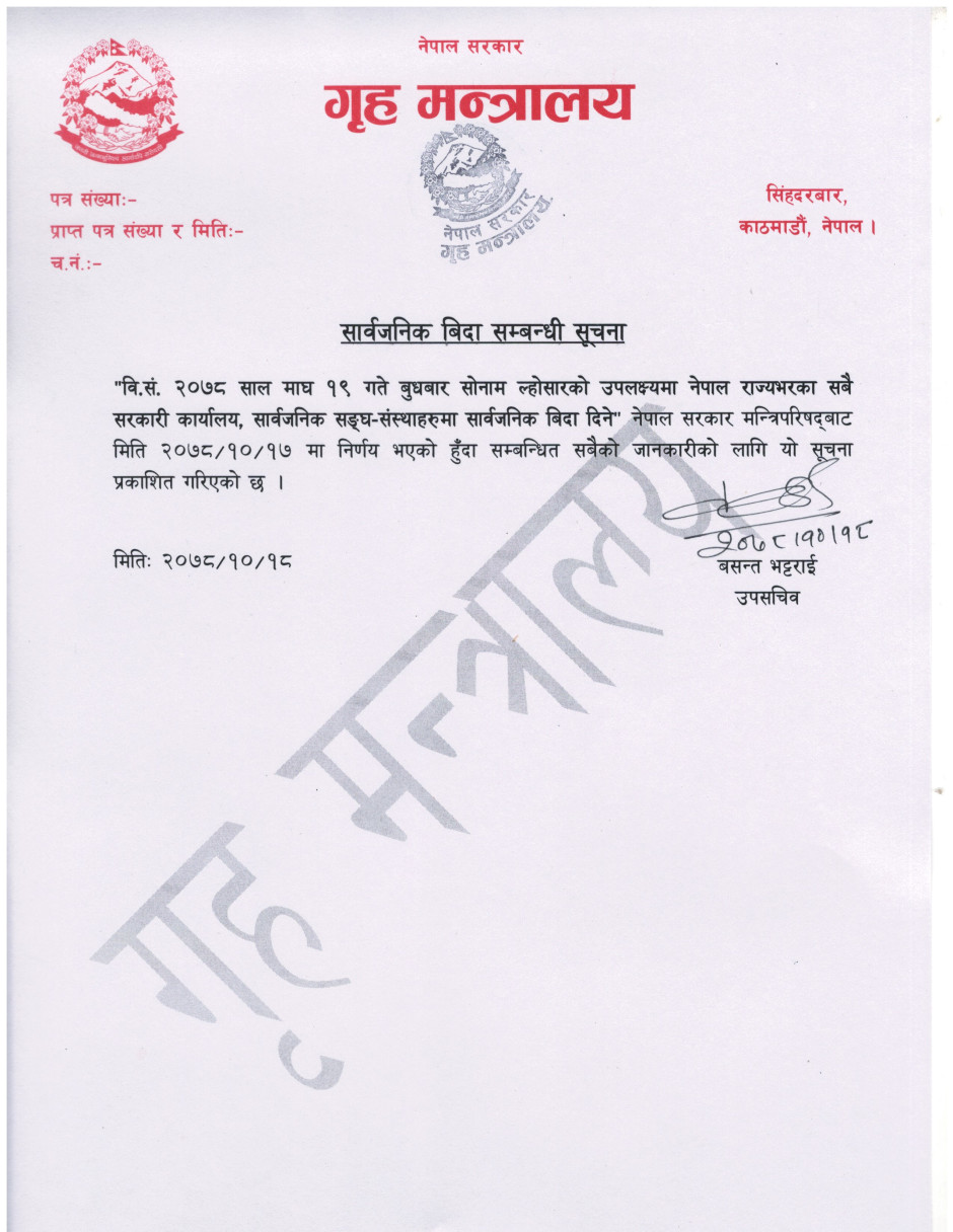 २०८१ सालको सरकारी तथा सार्वजनिक विदा