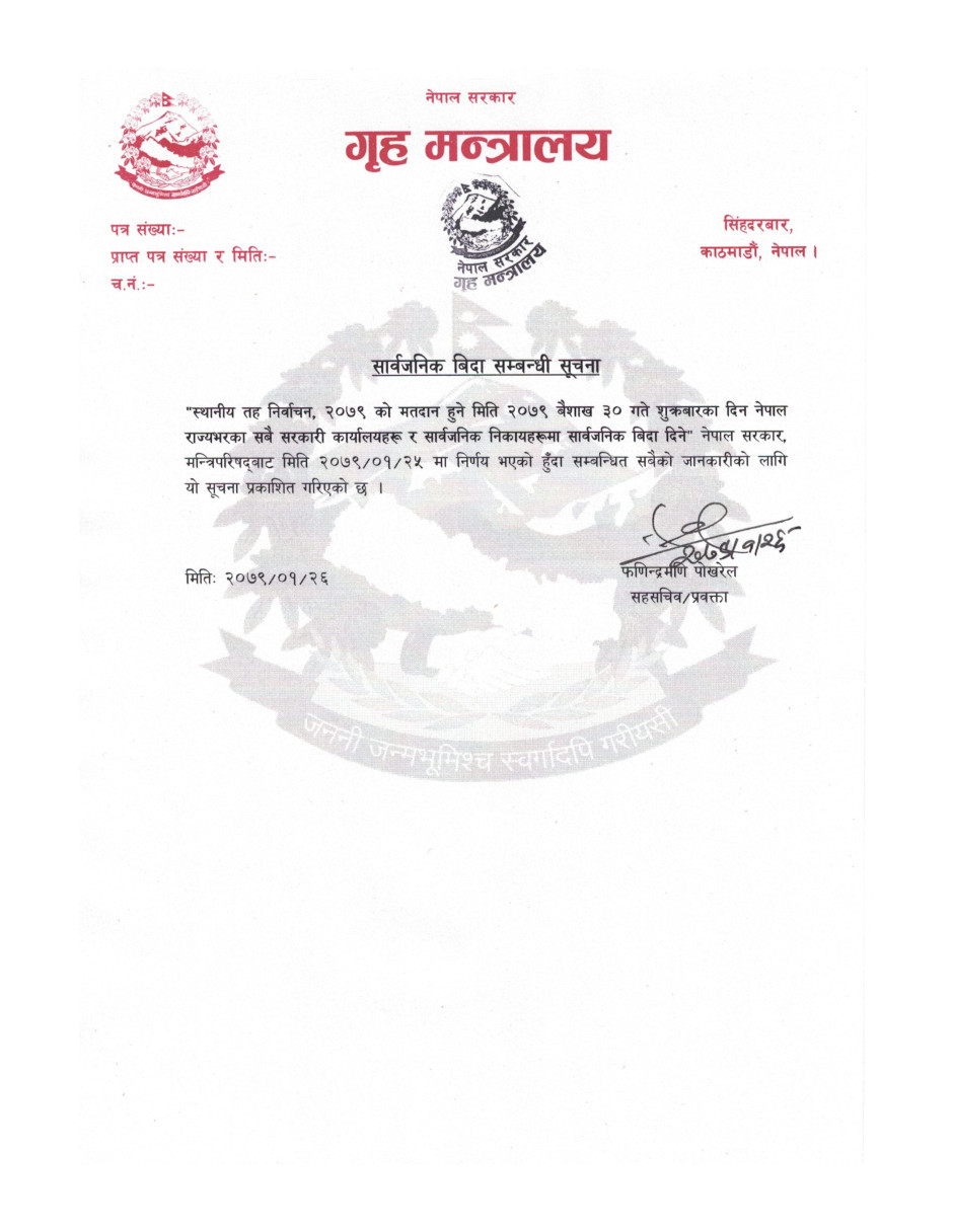 सार्वजनिक विदा सम्बन्धी सूचना