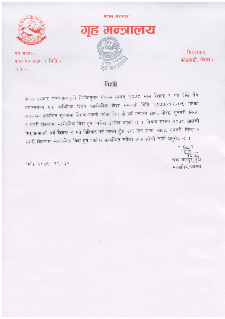 २०८१ सालको सरकारी तथा सार्वजनिक विदा