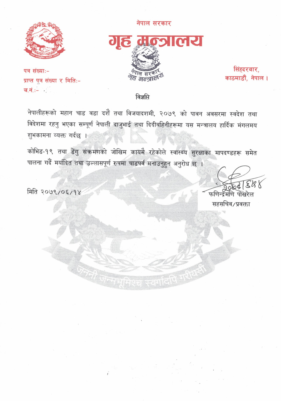 वडा दशैंको शुभकामना सम्बन्धि विज्ञप्ति