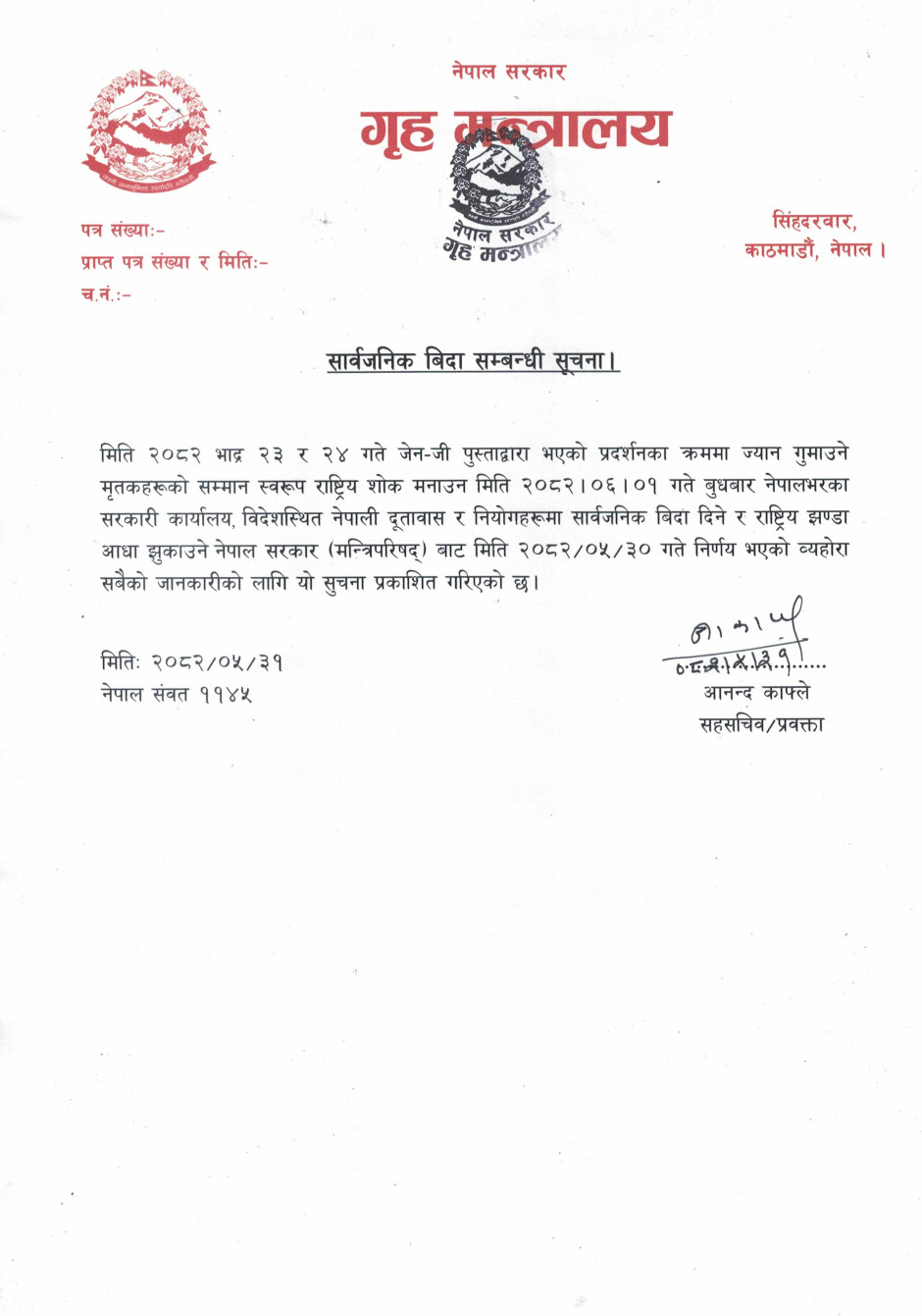 २०८२ सालको सरकारी तथा सार्वजनिक विदा