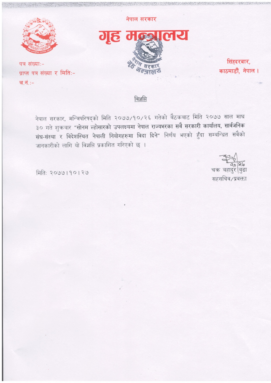 २०८३ सालको सरकारी तथा सार्वजनिक विदा