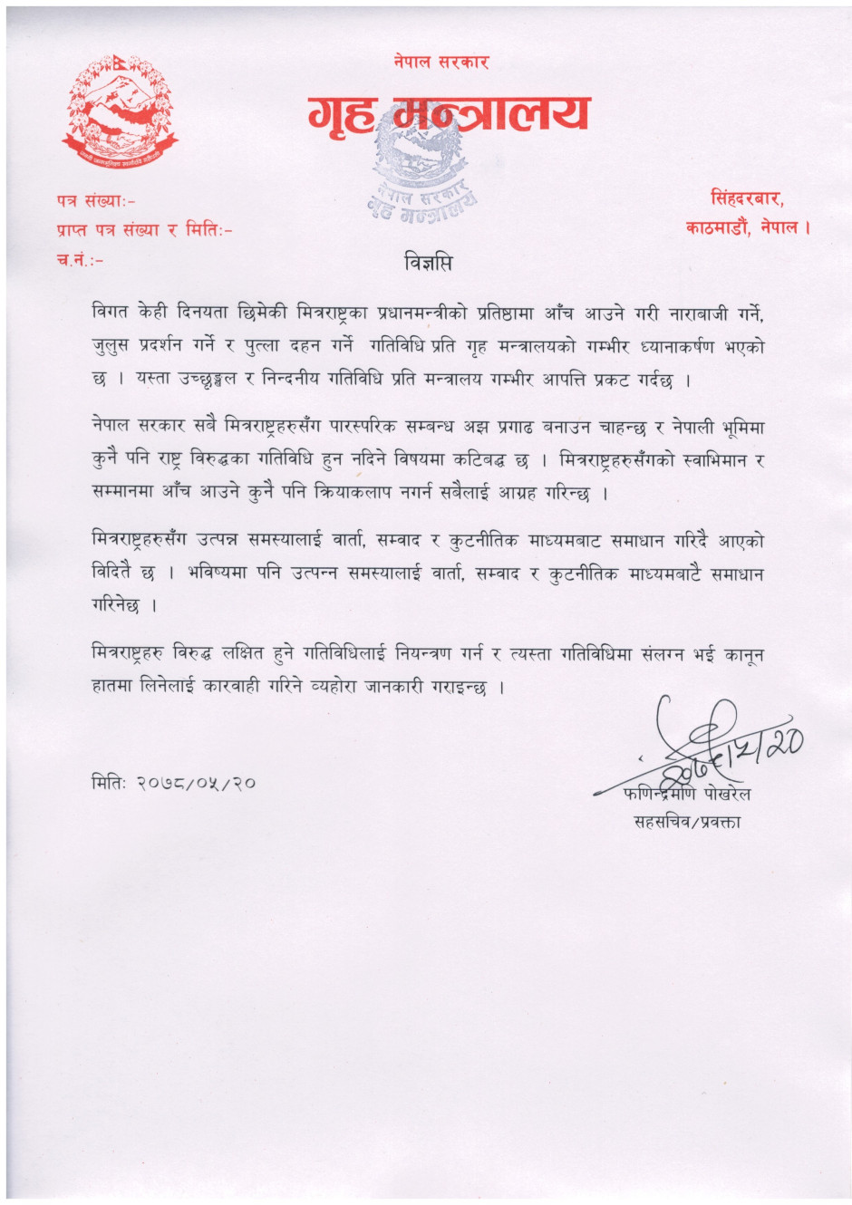 प्रेस बिज्ञप्ति