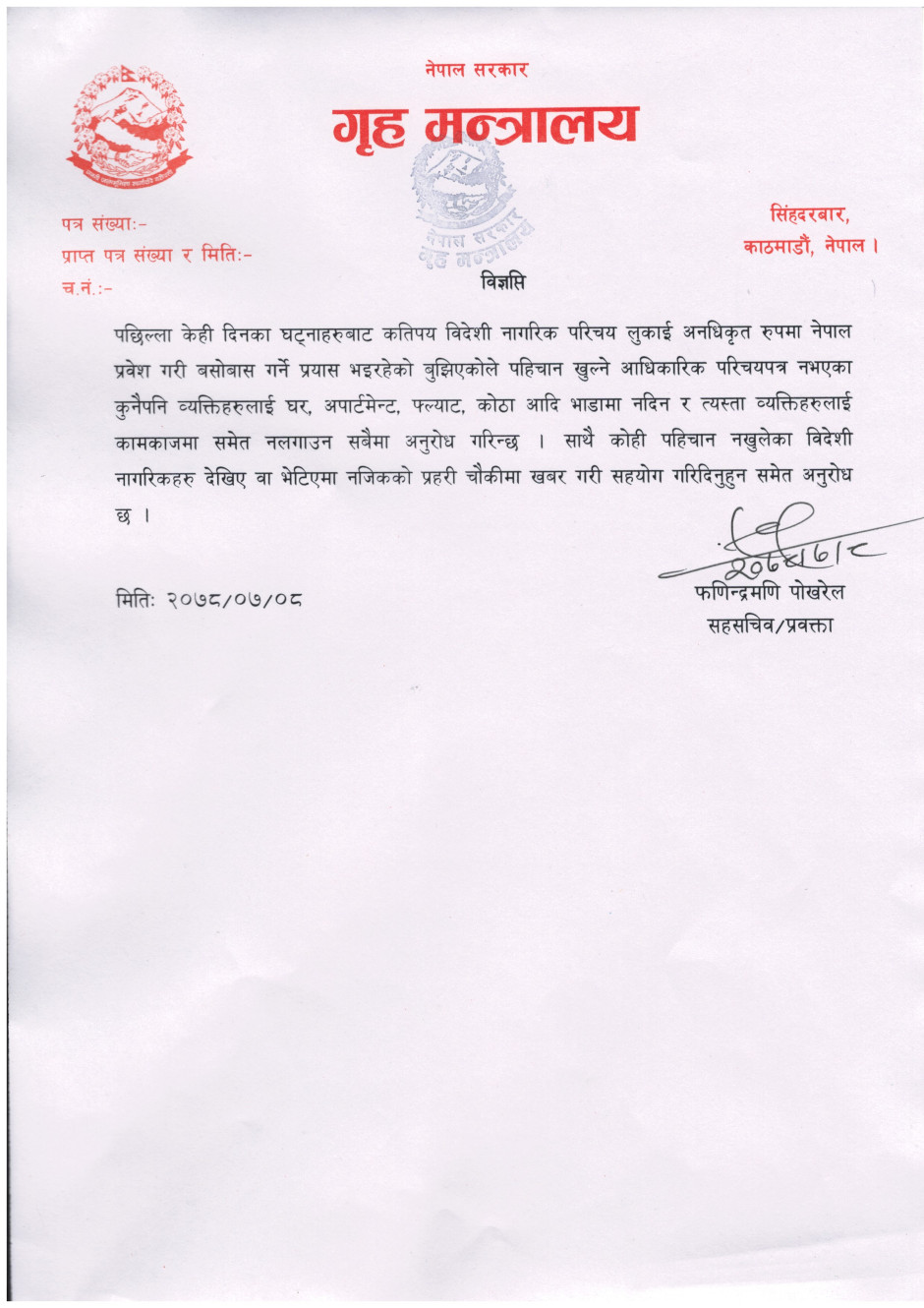 © सर्वाधिकार सुरक्षित गृह मन्त्रालय