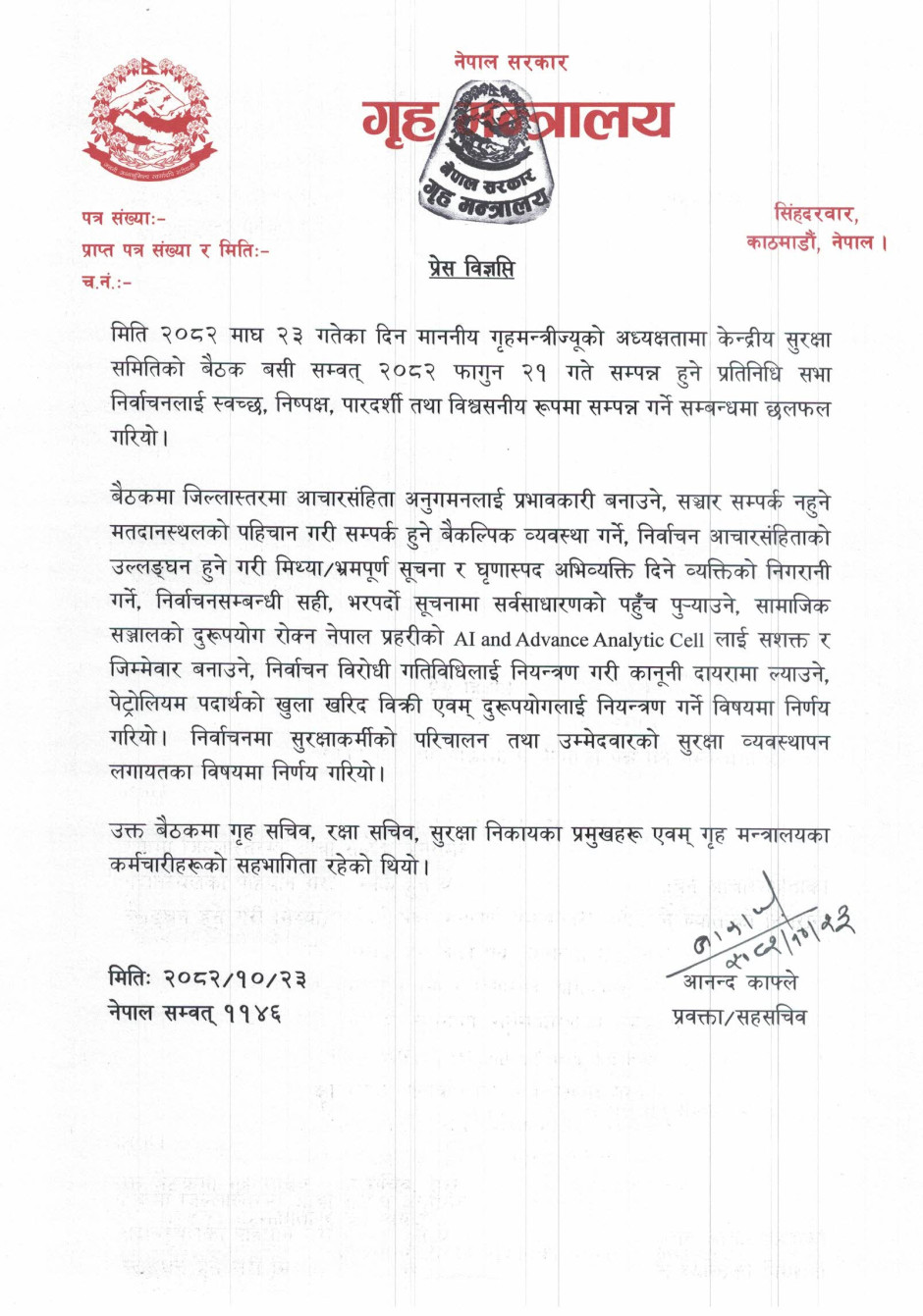 गृह मन्त्रालयसँग सम्बन्धित गुनासोका लागि सम्पर्क नम्बर